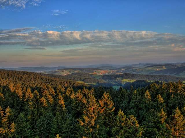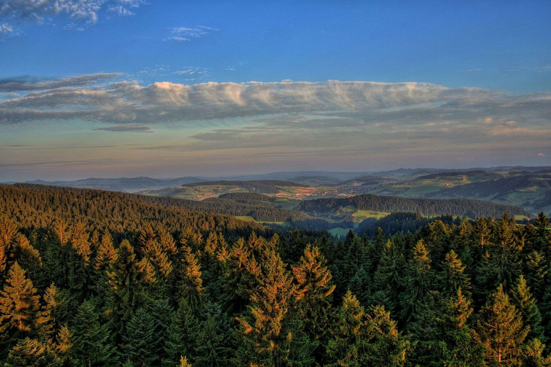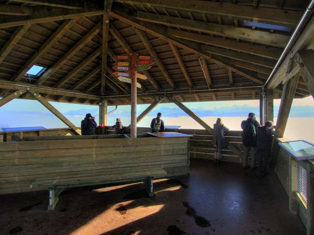 Der 42 Meter hohe Aussichtsturm Chuderhüsi ist aus Weisstannen-Holz gebaut und gehört zu den höchsten Holztürmen der Schweiz.