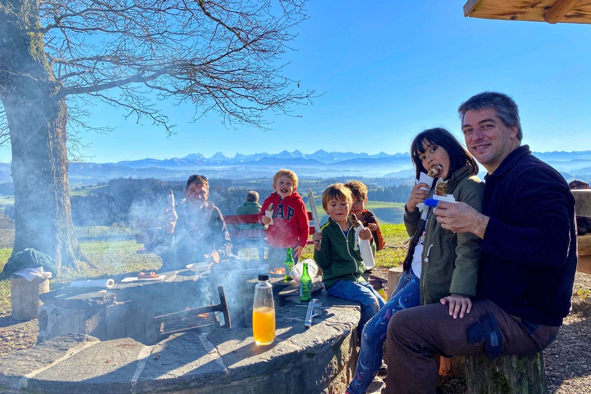 - Die Brätlistelle neben dem Denkmal lädt zu einer Pause ein. Sie besteht aus zwei komfortablen Schweizer-Familien-Feuerstellen, zwei grossen Holztischen und einem überdachten Depot mit viel Brennholz.