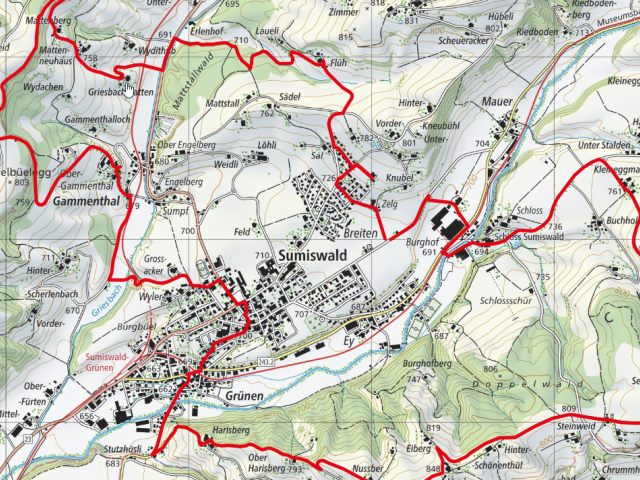 - Wir empfehlen, den Rundweg in Sumiswald zu starten (Parkplatz/ÖV-Anbindung). Sie können den Lehrpfad jedoch auch an einem beliebigen Ort beginnen.