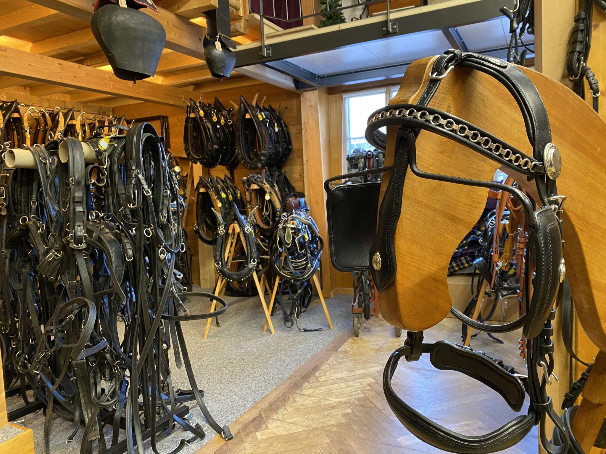 Während der Tour erhalten die Schüler:innen einen tieferen Einblick in die Werkstatt. Hier können sie beobachten, wie Glockenriemen verziert, Hosengürtel kunstvoll gestaltet oder Pferdegeschirre sorgfältig genäht werden. Im Lederlager erleben sie die Vielfalt des Materials sowohl visuell als auch olfaktorisch. In der Abteilung für Kummetherstellung lernen sie, was alles erforderlich ist, um ein Kummet herzustellen. Zum Abschluss wird der ehemalige Saal besucht, wo eine beeindruckende Ausstellung verschiedener Geschirre bewundert werden kann.