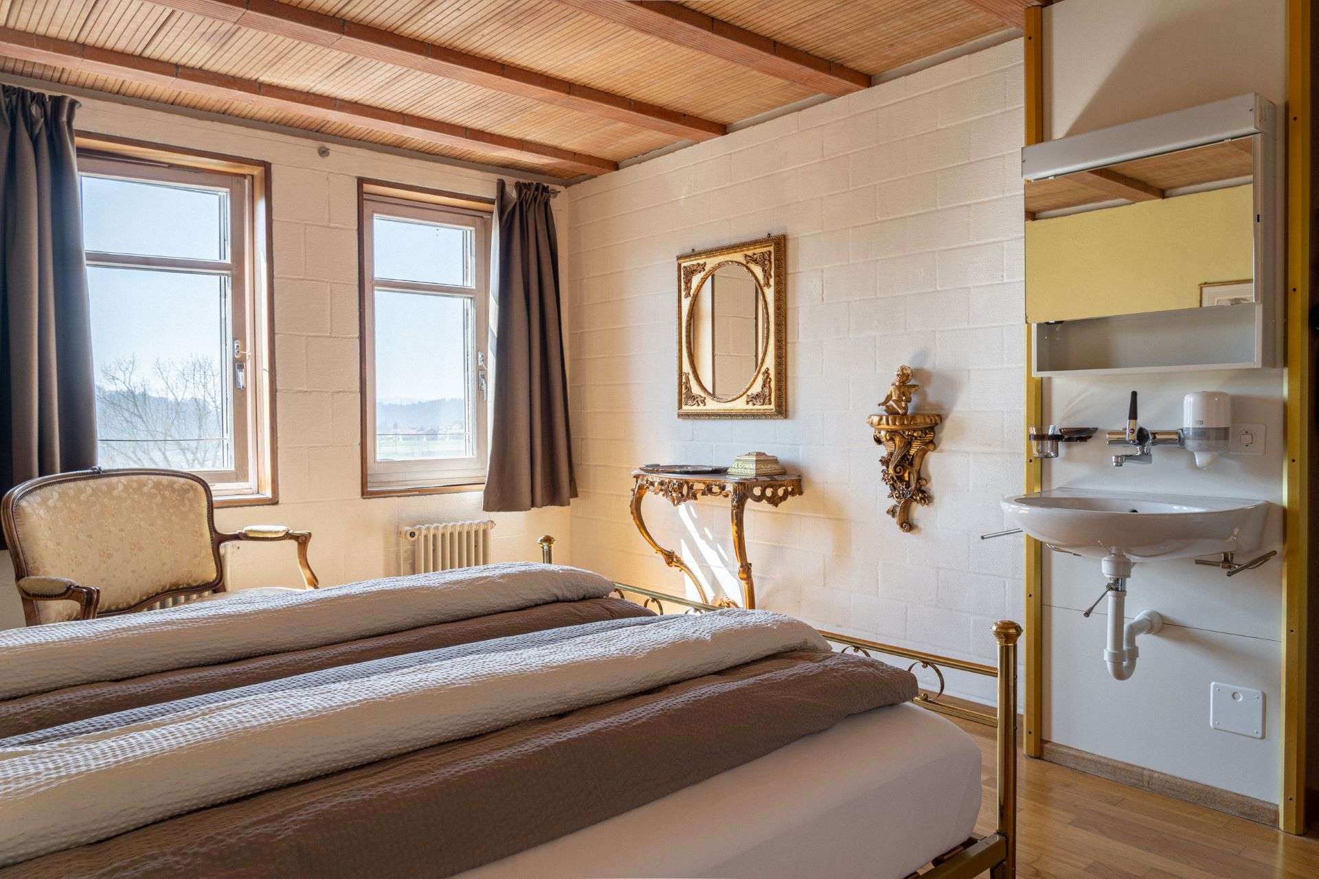 - 8 Zimmer mit insgesamt 20 Betten. Die Betten liegen im Turm des Schlosses Sumiswald und sind alle liebevoll eingerichtet.