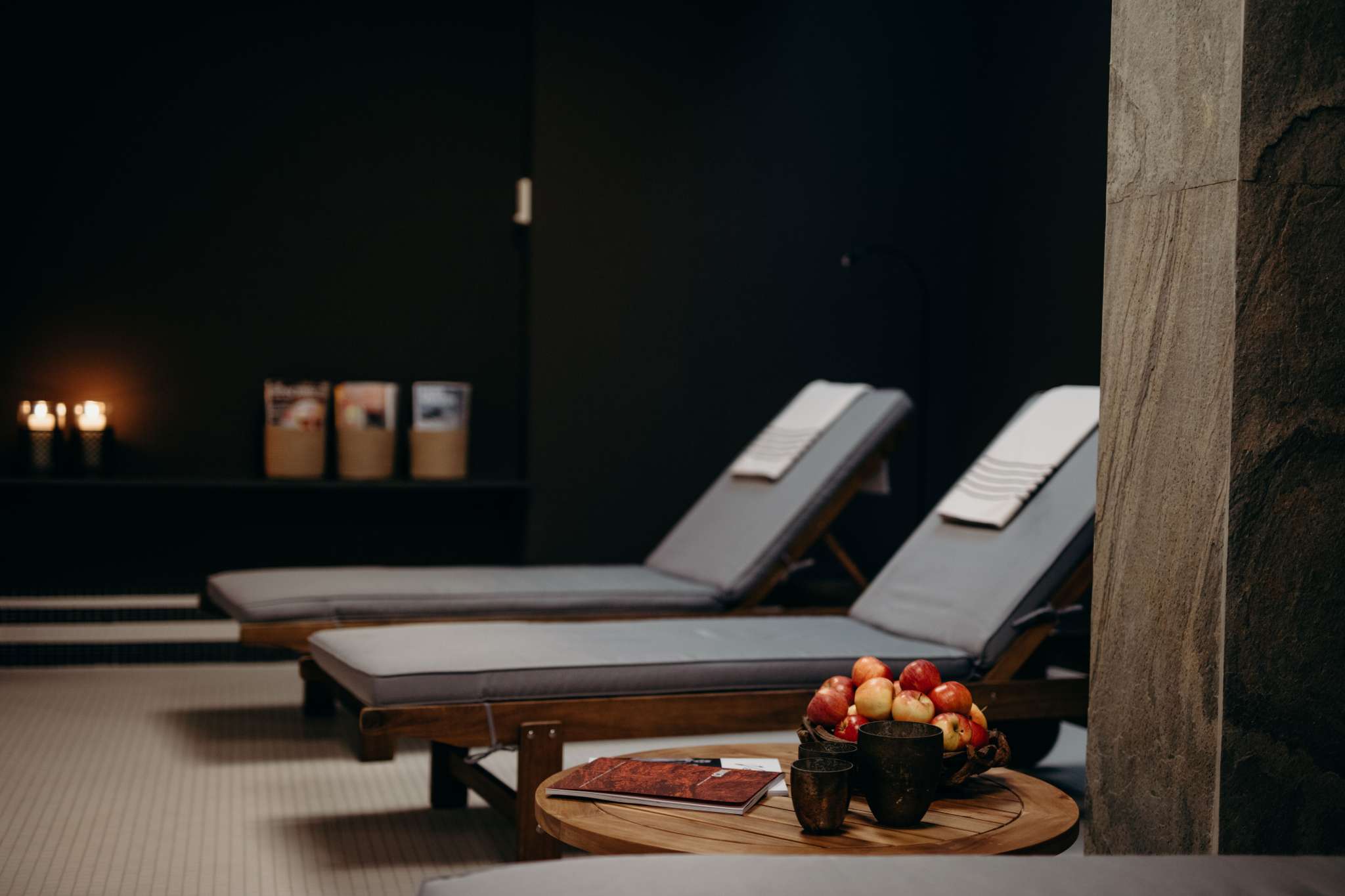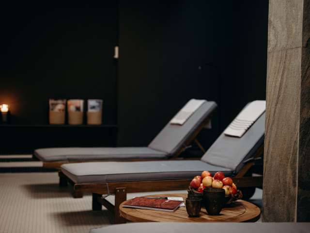 Zu den Wellnesseinrichtungen im Schloss Hünigen gehören eine Biosauna, eine Sauna, ein Dampfbad, zwei Whirlpoolwannen und Erlebnisduschen.