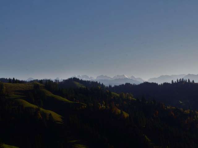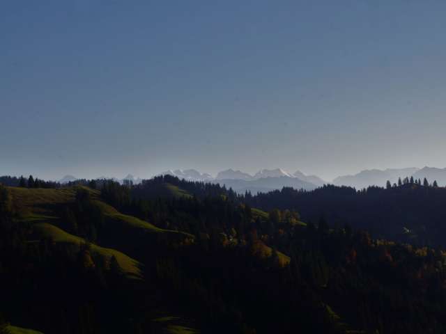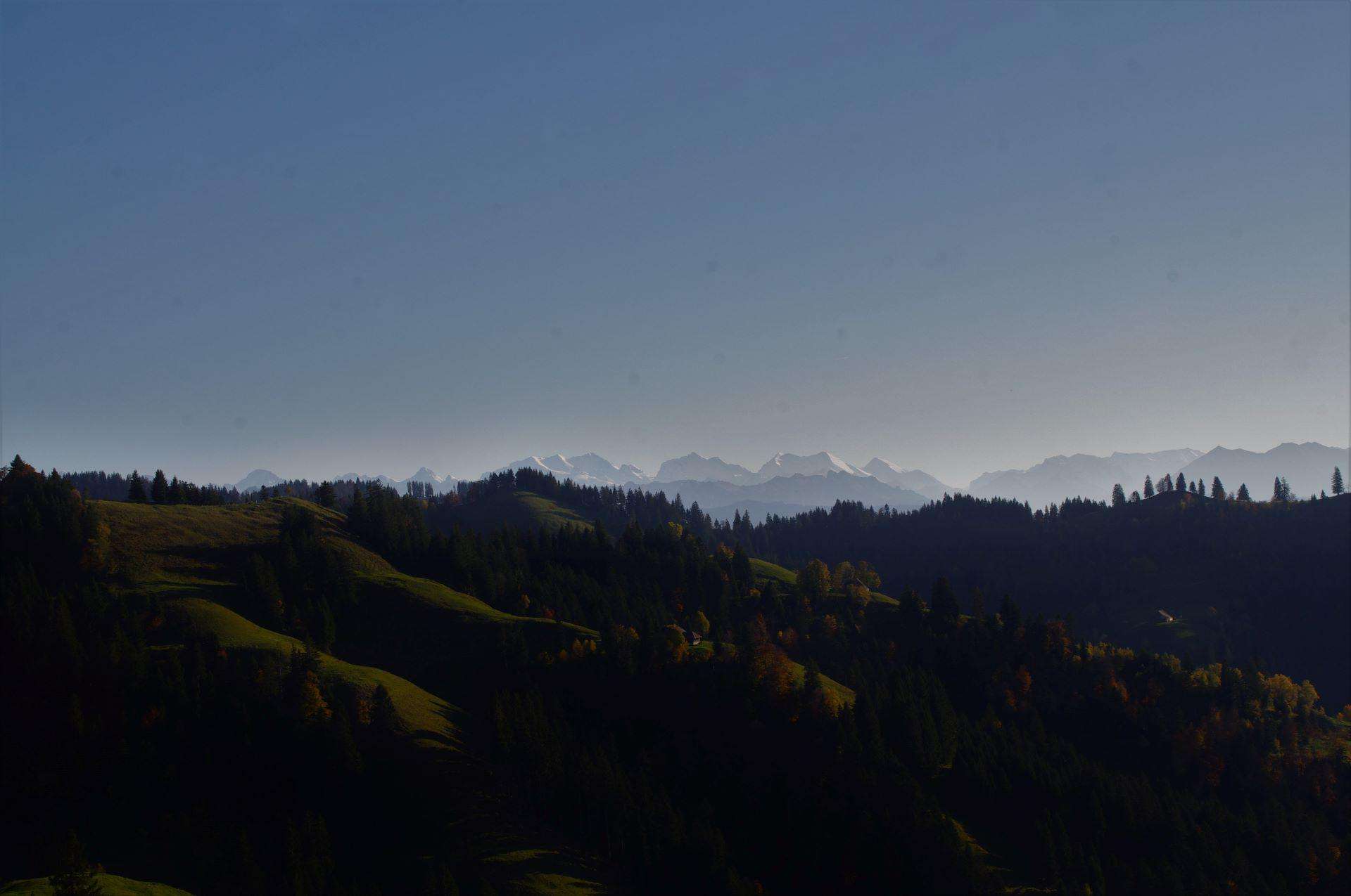 Die Alpwirtschaft Hinterarni (1220 Meter über Meer) bietet eine wunderbare Panoramasicht über das Emmental auf die Berner Alpen.