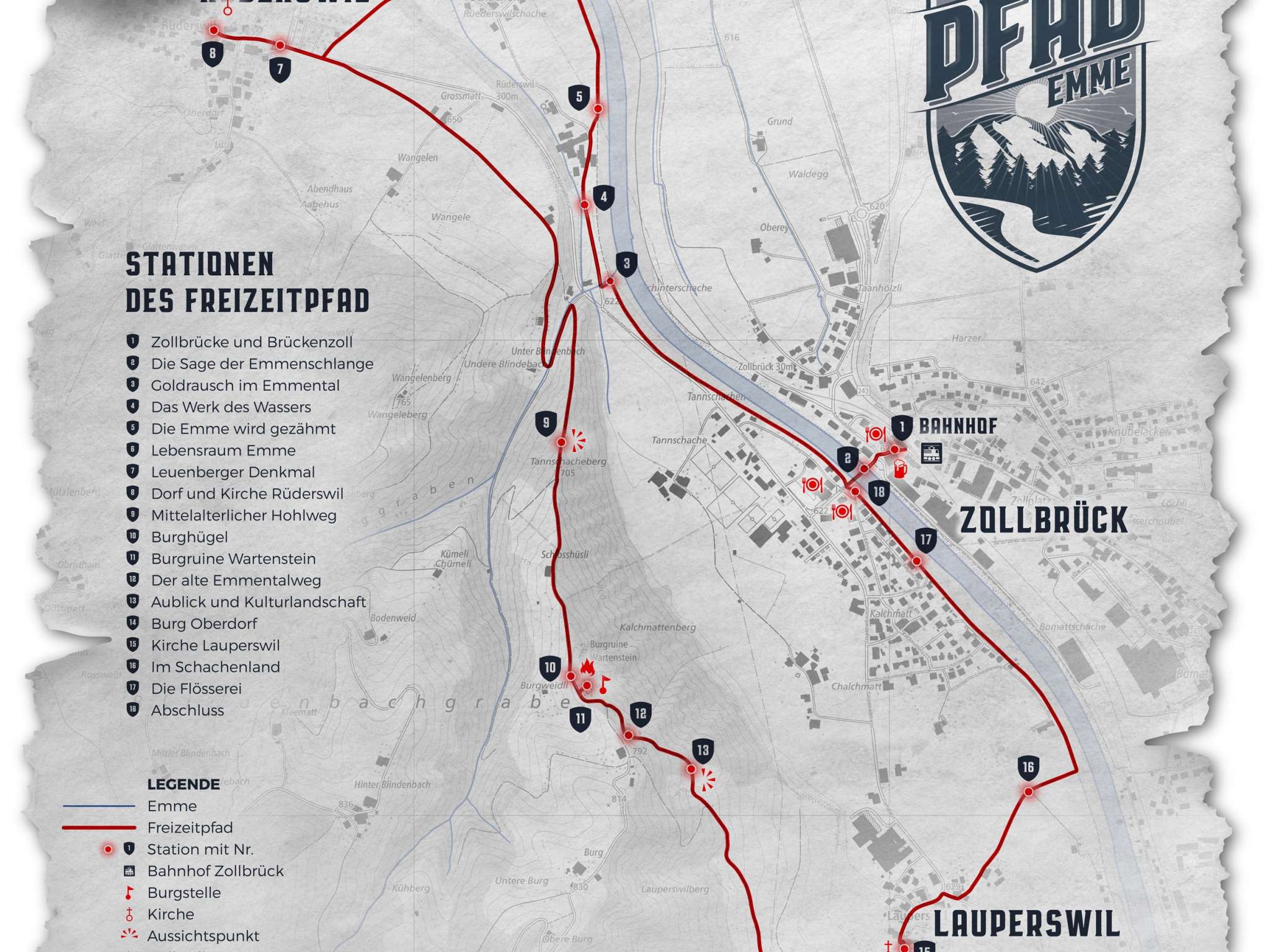 Ein digitaler Entdeckungspfad entlang der Emme. Dabei informiert der Erzähler spannend, was die Besucher:innen gerade vorfinden.