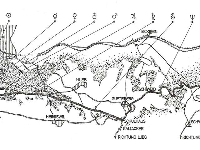 Entdecken Sie die Grössenverhältnisse unseres Sonnensystems auf dem Planetenweg Burgdorf. Im Massstab von 1:1 Milliarde wird, durch ein auf einer Strecke von rund 6 km verteiltes Freilichtmodell, die Grösse der Sonne und der Planeten sowie die Entfernung der Planeten von der Sonne gezeigt.