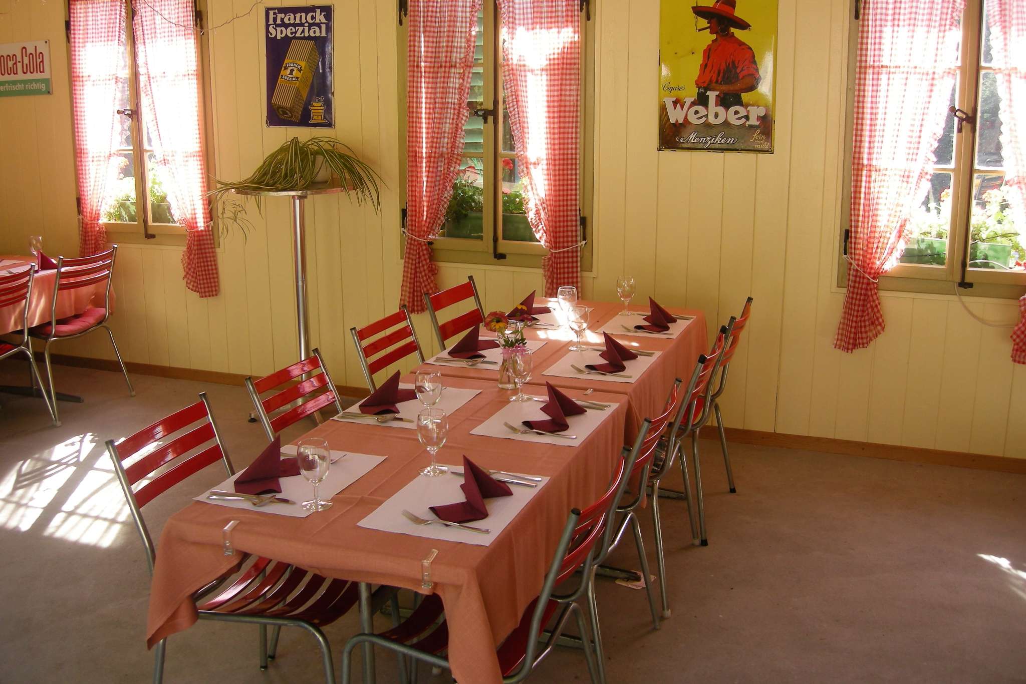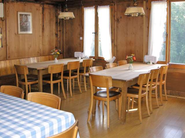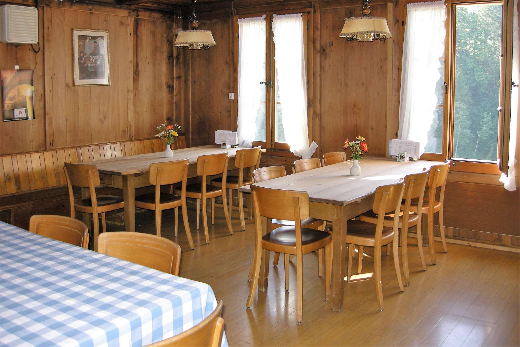 Die Gaststube bietet Raum für eine fröhliche Runde unter Freunden, ein gemütliches Nachtessen an den urchigen Holztischen oder ein Absackerli nach einem anstrengenden Tag. Eine gegen Wetterkapriolen geschützte Terrasse gleich beim Eingang zum Restaurant bietet im Sommer Platz für einen gemütlichen Umtrunk.