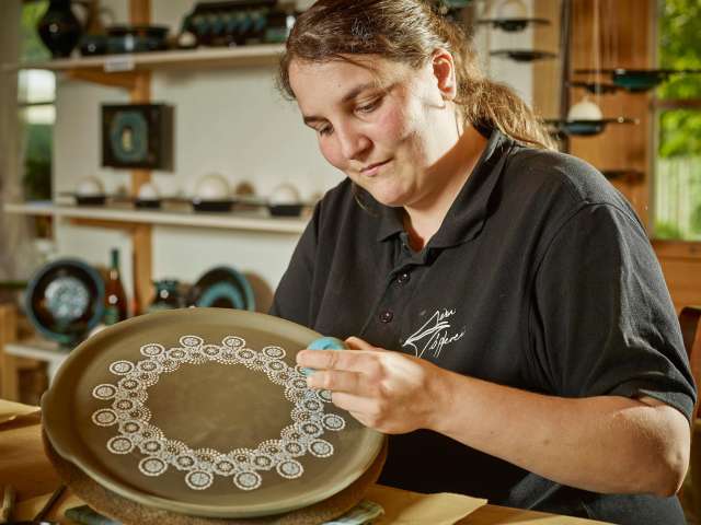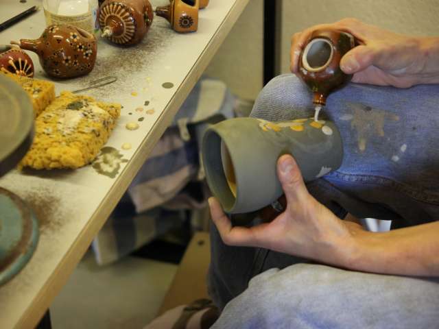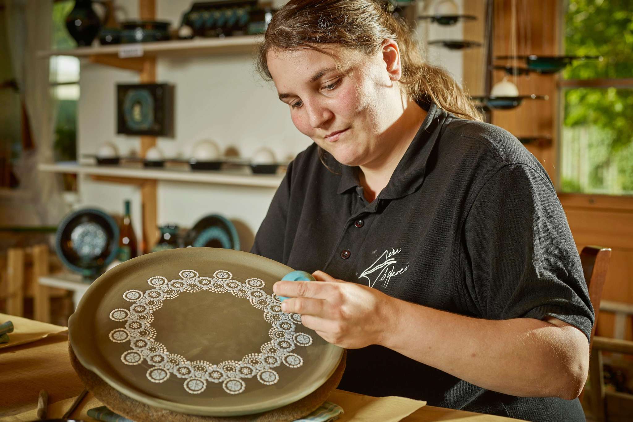 Schauen Sie den professionellen Töpfern der Schautöpferei Aebi in Trubschachen bei der Herstellung von Geschirr und Tonwaren über die Schulter.