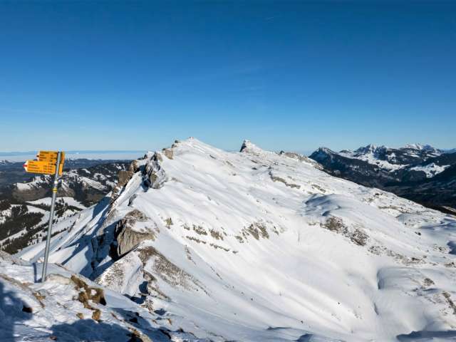 Bizarre Gesteinsformationen prägen das Gesicht der Schrattenfluh. Sie sind das Ergebnis jahrtausendelanger Erosionsprozesse. Dabei wurde der langgezogene Kalkriegel tief eingefurcht. Der silbergrau schimmernde, von Schrunden und Gräben durchsetzte Berg ist ein sehr reizvolles Wanderziel. Reichlichen Genuss verspricht der Höhenweg vom Hengst zum Schibengütsch. Im Norden schweift der Blick über die Hügelwellen des Entlebuchs zum Mittelland und zum Jura,
