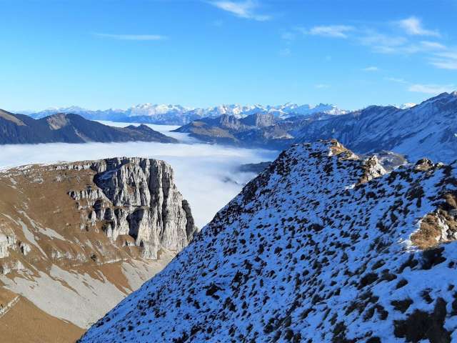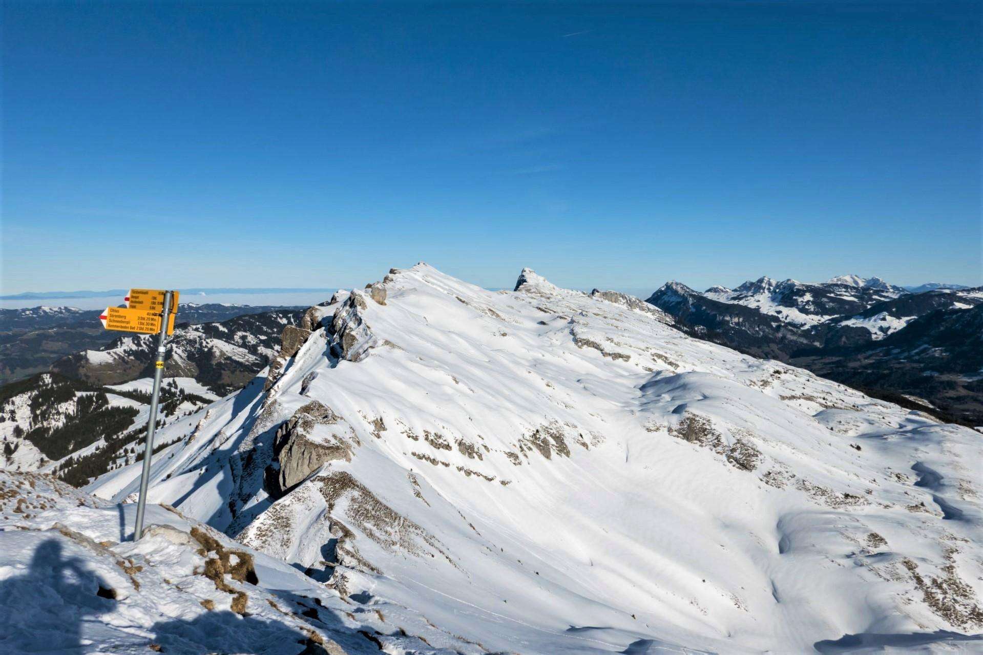 Der Schibengütsch ist 2037 m ü. M. hoch und bildet das südwestliche Ende des Gebirgsstocks der Schrattenfluh. Mit grandiosem Ausblick zum nahen Hohgant und die über den Wolken thronende Berner Prominenz mit Eiger, Mönch und Jungfrau.