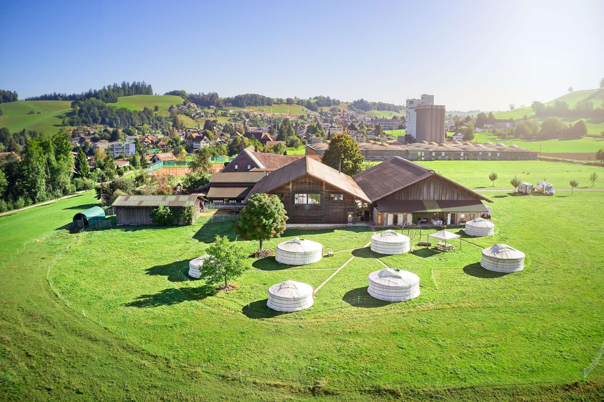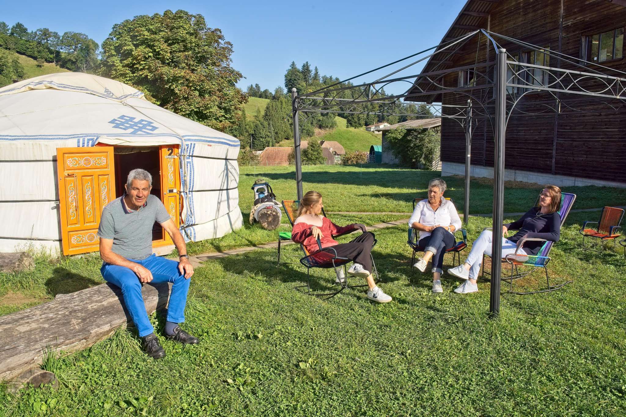 Preisgünstig übernachten, Romantik verspüren und das einfache Leben in der Natur geniessen - das verspricht die original mongolische Jurte. Dank des neuen Dusch- & WC-Containers ist der Komfort nochmals deutlich gestiegen. Parkplätze sind vorhanden, auch Velos, Mofass, usw. Total stehen 7 Jurten zur Auswahl mit insgesamt Platz für maximal 38 Personen. Ein reichhaltiges Frühstücksbuffet rundet das Erlebnis ab. Geeignet sind Übernachtungen für Paare, Gruppen oder Familien.